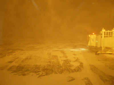 Belle tempête de neige pour notre retour en France. -15°C, des rafales à 70 km/h, la fac fermée, les taxis quasiment tous chez eux et, bien sûr, tous les vols annulés...